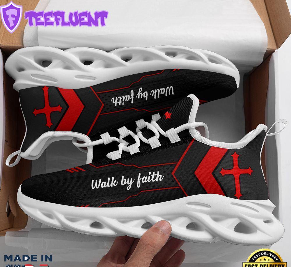 - Red Jesus Walk By Faith Running Christ Sneakers Max Soul Shoes For Men And Women Gift Xmas