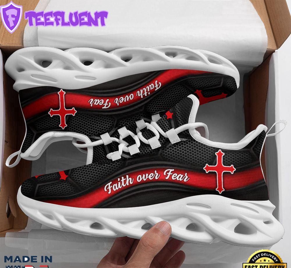 - Jesus Faith Over Fear Red Black Running Sneakers Max Soul Shoes For Men And Women Gift Xmas