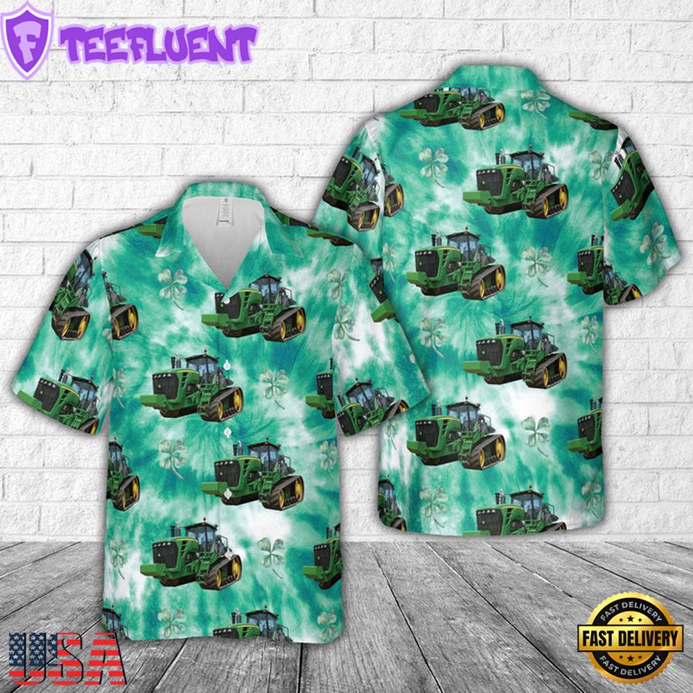 Photos Of John Deere Tracked Tractor (9630T) Patrick’S Day Tie Dye Hawaiian Shirt , Vintage Hawaiian Shirts