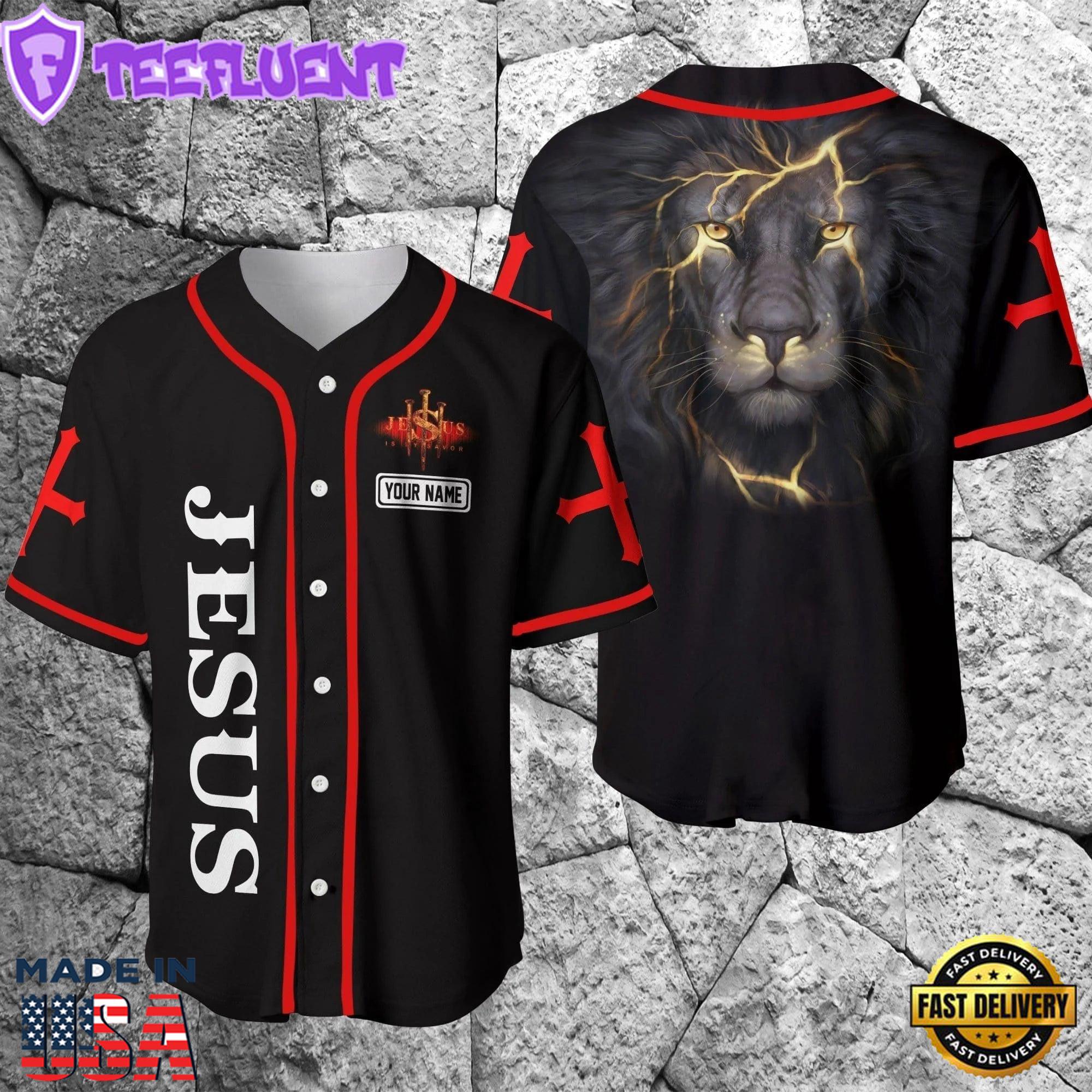 - Cross, Lion Baseball Jersey – Jesus Custom Printed Baseball Jersey Shirt For Men and Women Christian Baseball Jersey