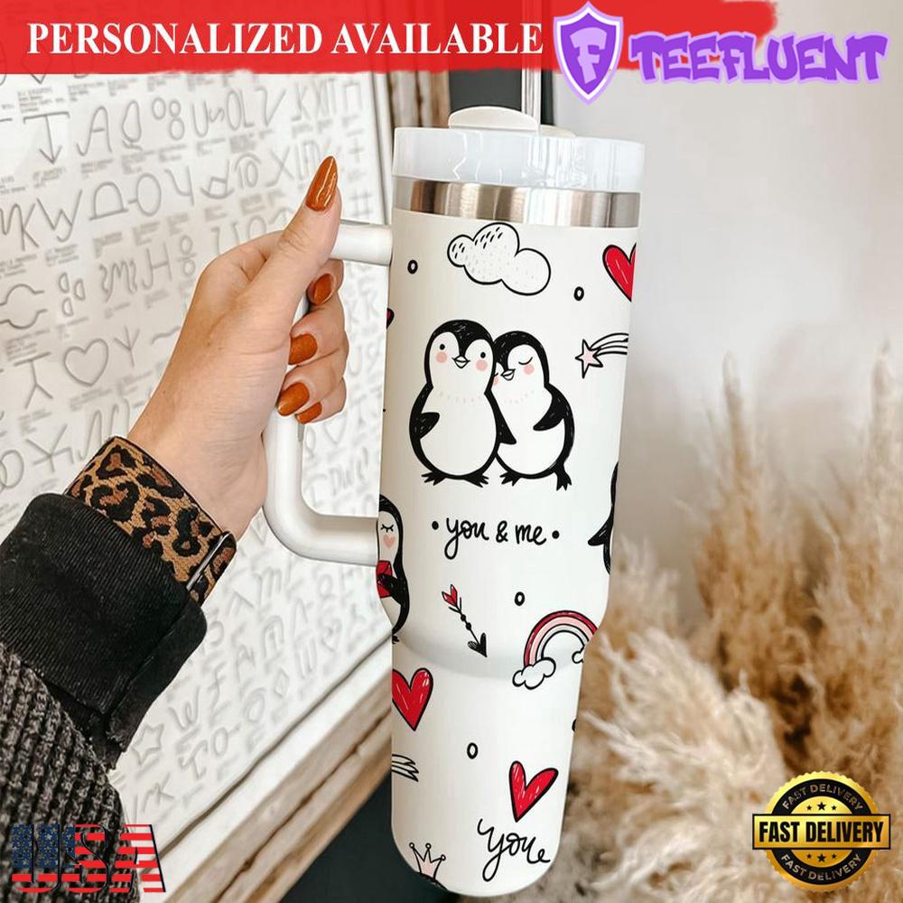 Loving Penguin Tumbler 40oz With Handle Valentine Tumbler 40oz , Gift For Valentine’s Days