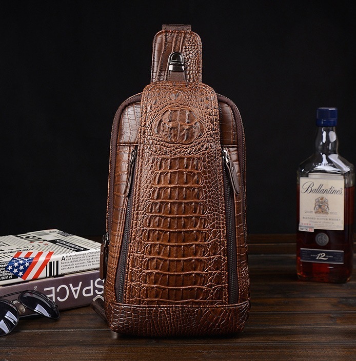 Men’s Chest Bag Crocodile Pattern One Shoulder Messenger Bag Fashion One Shoulder