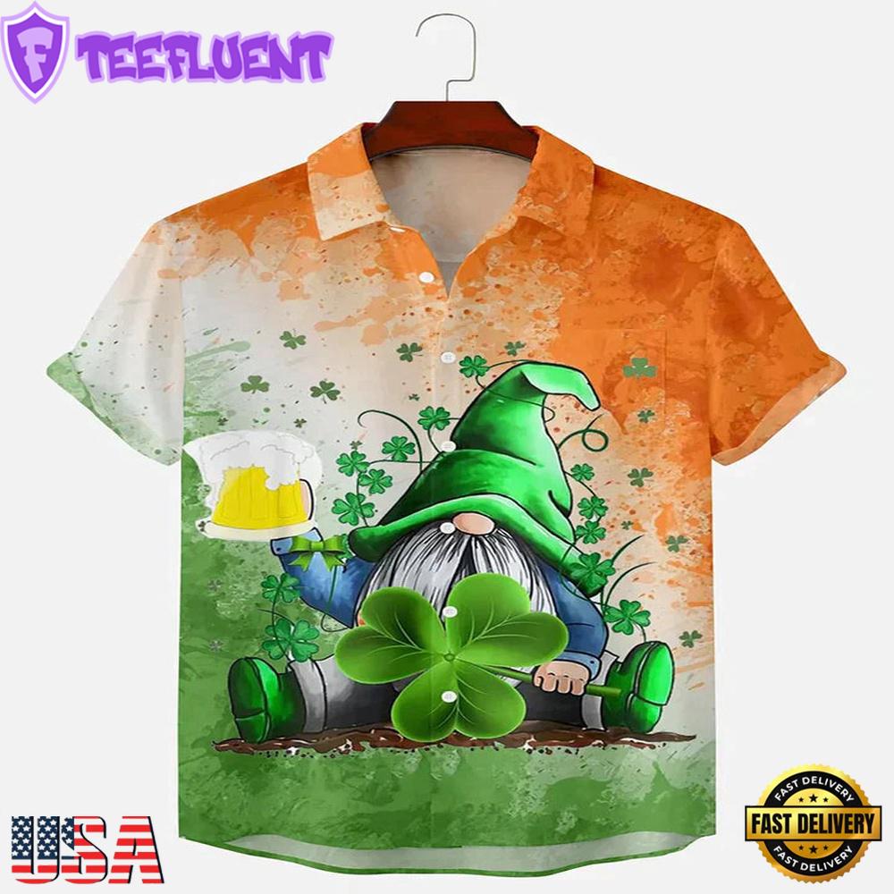 Mens St. Patrick’S Day Printed Shirt, Gnome Hawaiian Shirt , Vintage Hawaiian Shirts