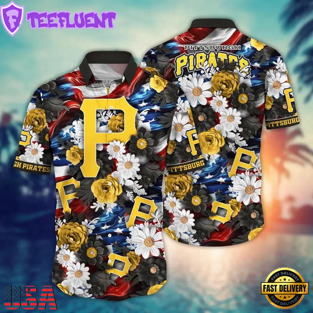 MLB Pittsburgh Pirates Floral Freedom Hawaiian Shirt , Vintage Hawaiian Shirt For Mens Womens