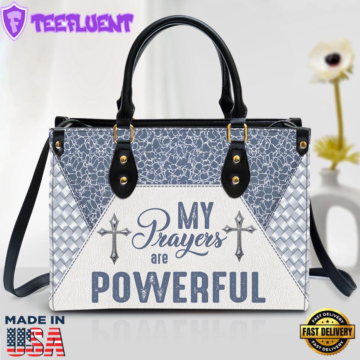My Prayers Are Powerful Gorgeous Leather Handbag Christ Gifts Leather Bags The leather handbag is a timeless accessory that exudes elegance and sophistication. Crafted from high-quality, supple leather, it features a smooth finish that enhances its luxurious appeal. With a spacious interior, it offers ample room for essentials like a wallet, phone, and makeup. The handbag is often adorned with meticulous stitching and subtle hardware details, adding a touch of charm. Its versatile design allows it to transition seamlessly from casual outings to formal events, making it a staple in any wardrobe. Whether carried by hand or slung over the shoulder, this leather handbag is both a practical choice and a statement piece.