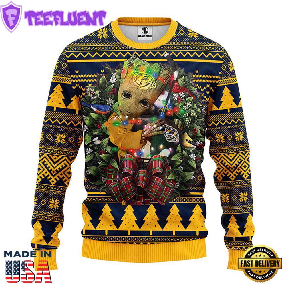 Photos Of Nashville Predators Groot Hug Christmas Ugly Sweater Sport For Fan Gift Xmas