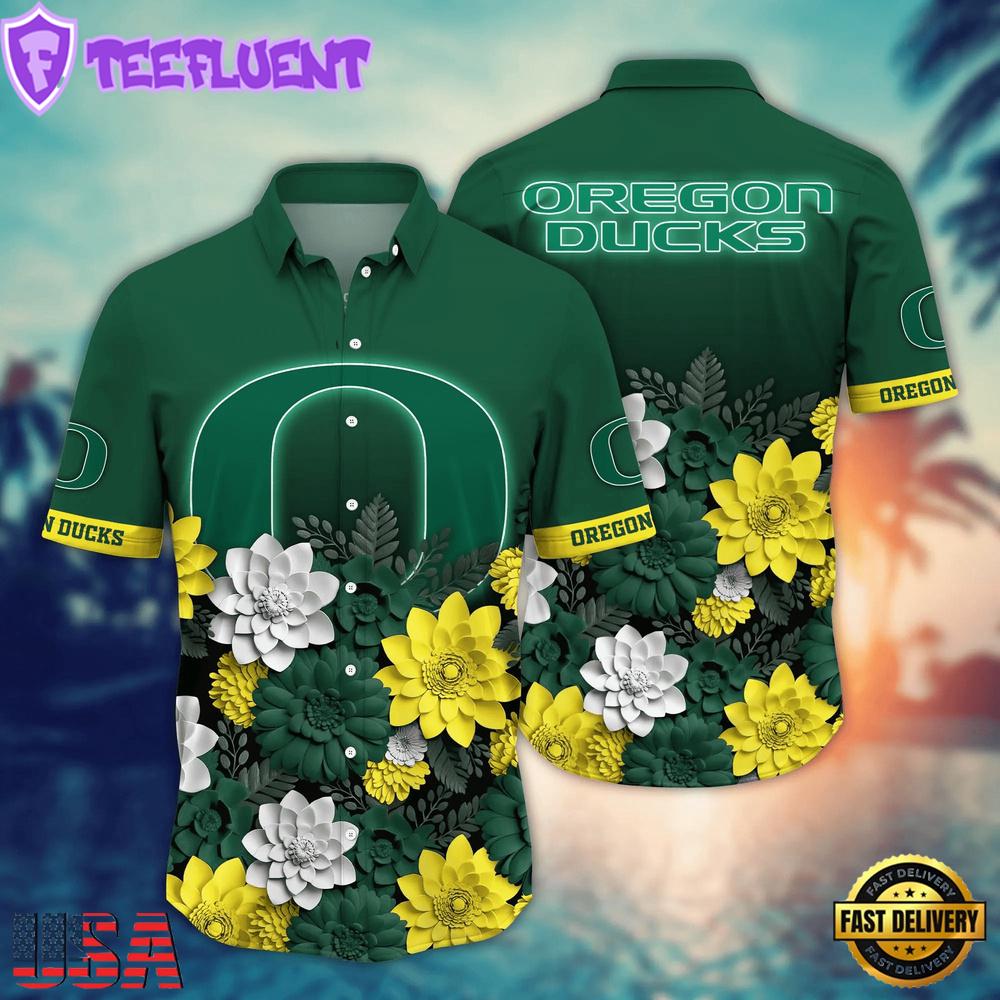 NCAA Ducks Flower Tropical Summer Beach Hawaiian Shirt , NCAA Fans Gift