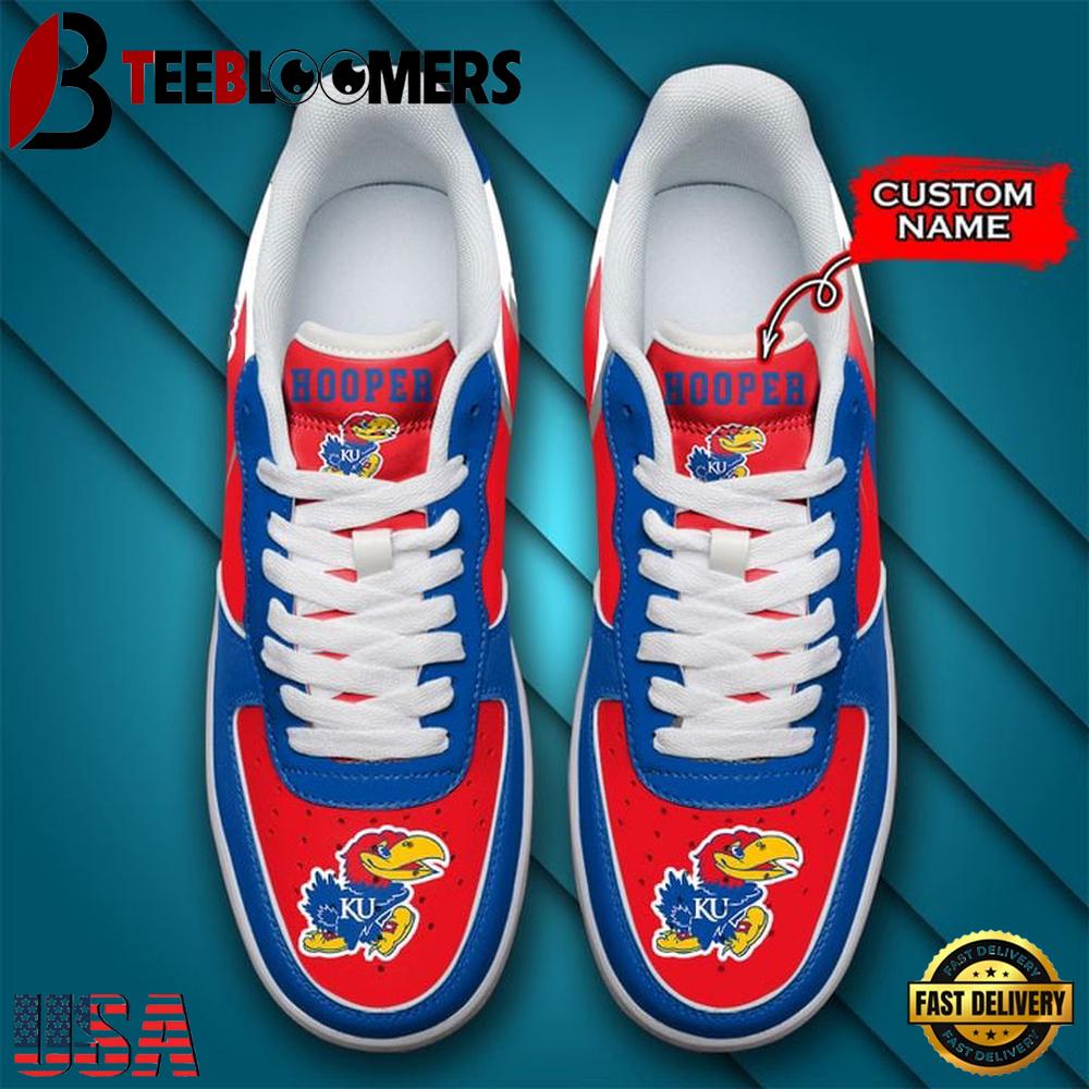 NCAA Kansas Jayhawks Custom Name Air Force 1 Shoes For Men Women