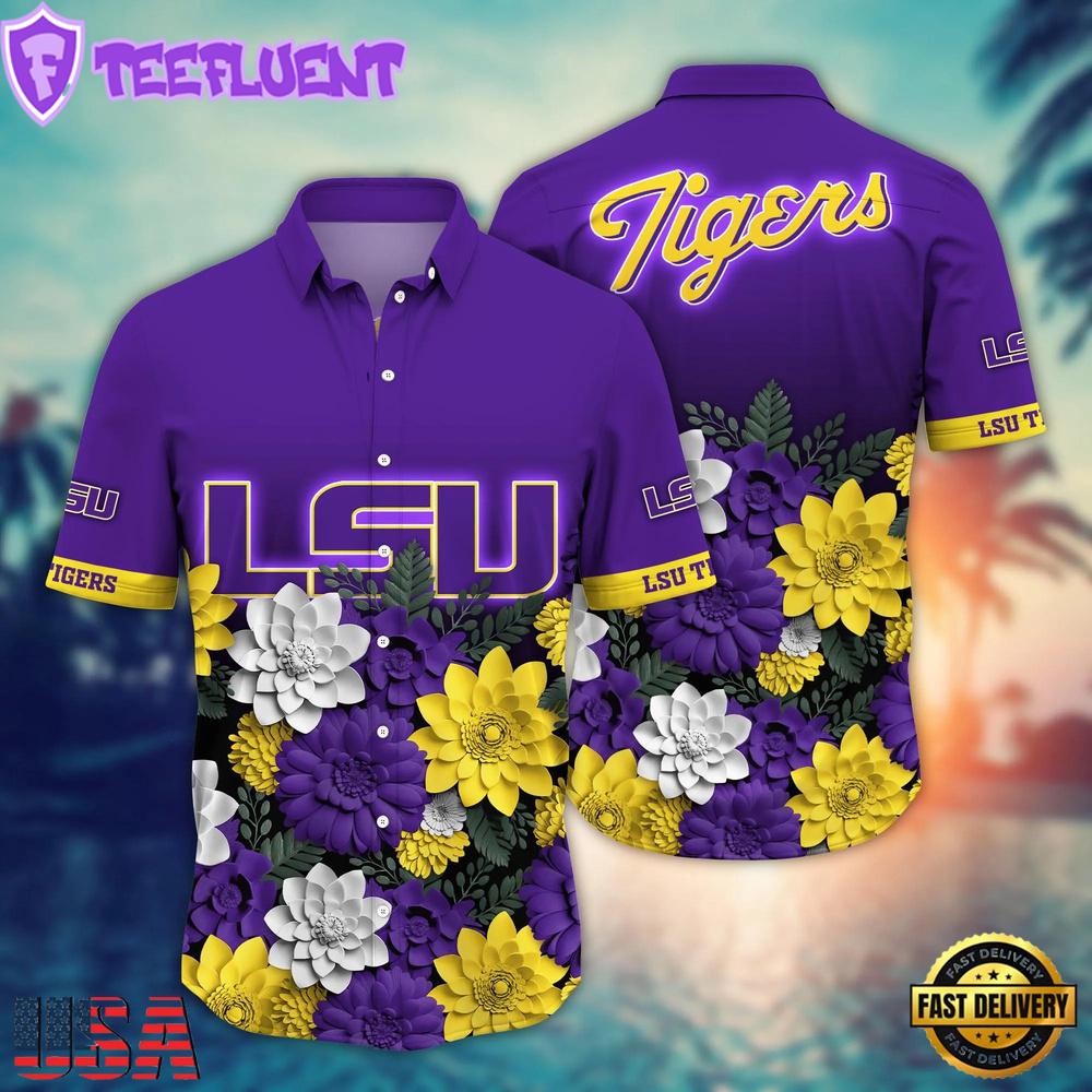 NCAA LSU TIGERS Flower Tropical Summer Beach Hawaiian Shirt , NCAA Fans Gift