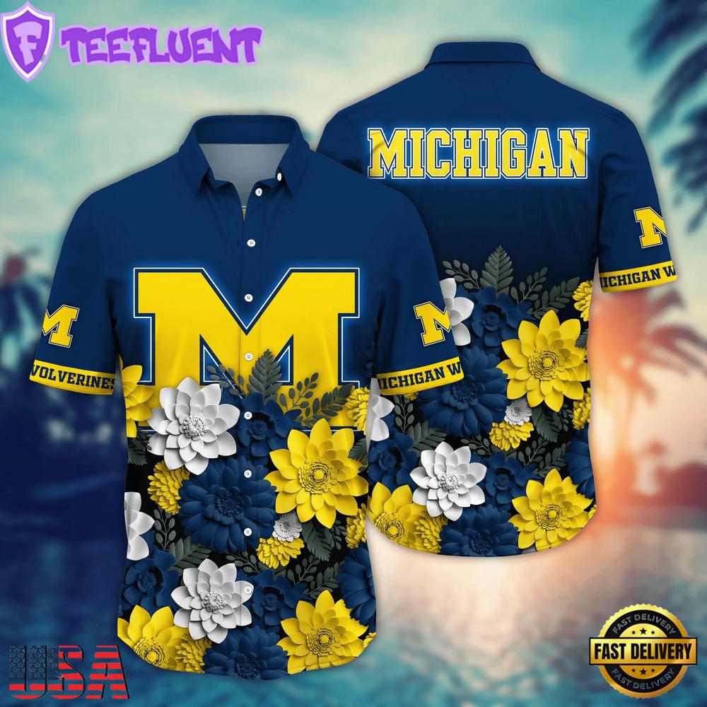 Photos Of NCAA Michigan Wolverines Flower Tropical Summer Beach Hawaiian Shirt , NCAA Fans Gift