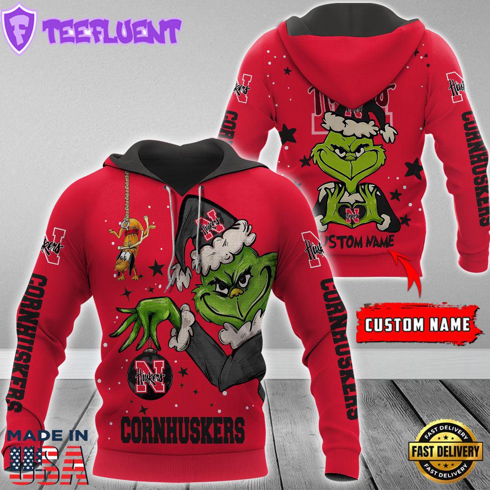 Ncaa Nebraska Cornhuskers Football Team The Grinch Custom Name Hoodie Gift Xmas
