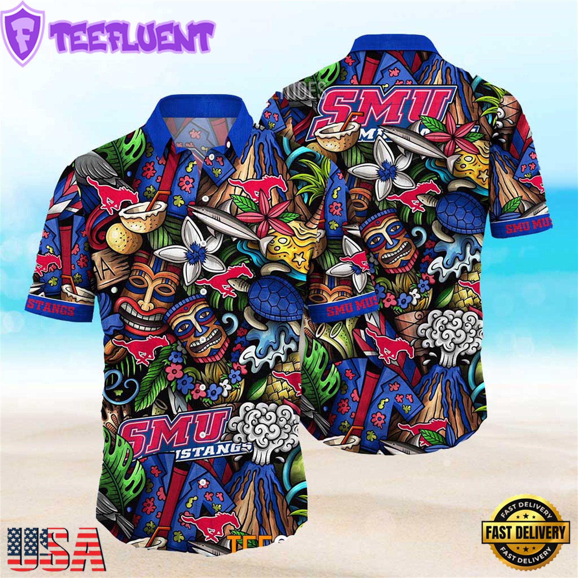 Photos Of NCAA NEW Smu Mustangs Ncaa Mens Floral Button Up Hawaiian Shirt