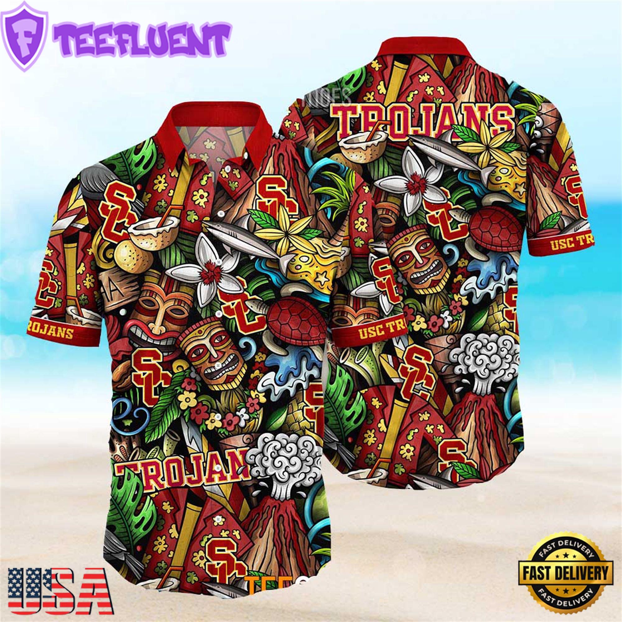 NCAA NEW Usc Trojans Ncaa Mens Floral Button Up Hawaiian Shirt
