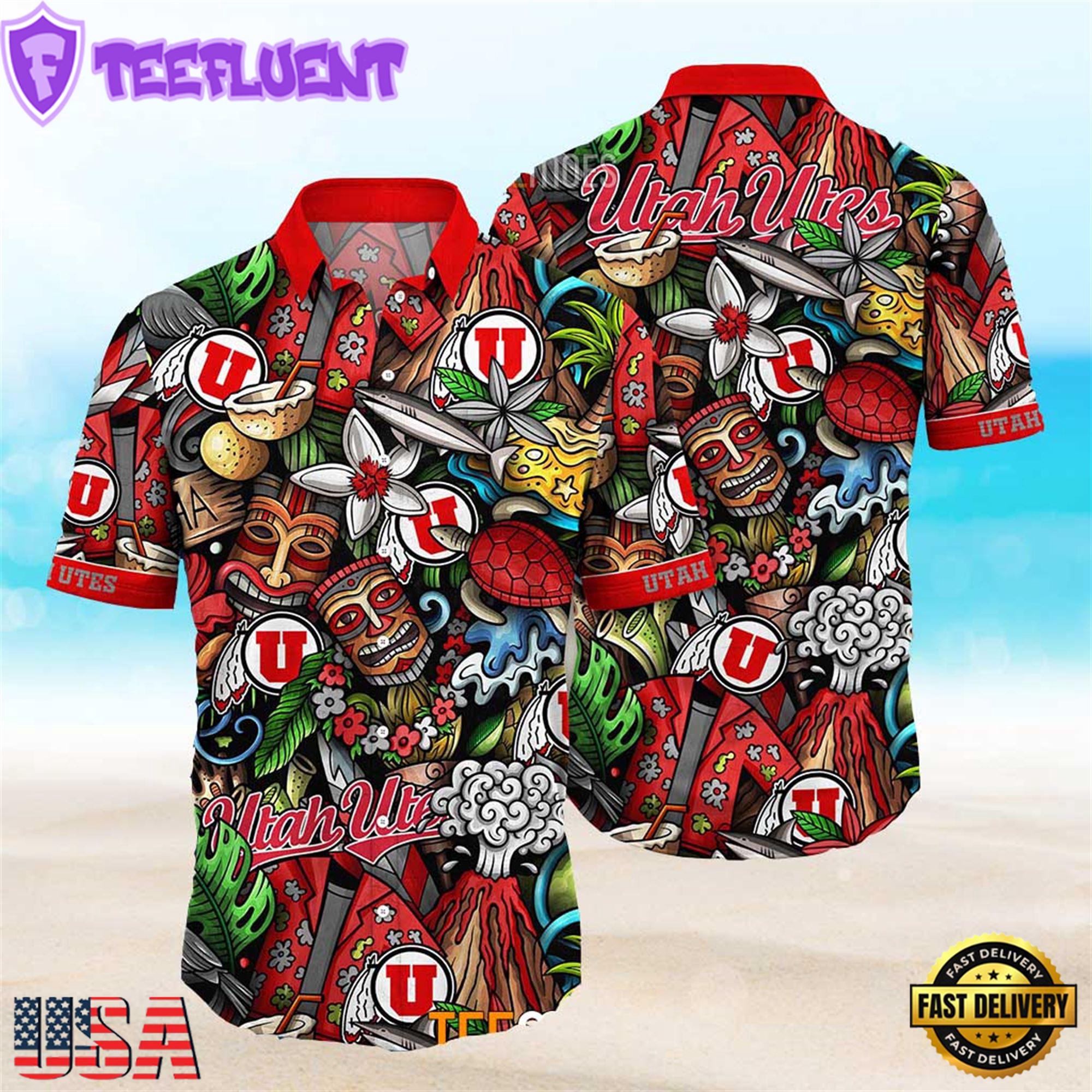Photos Of NCAA NEW Utah Utes Ncaa Mens Floral Button Up Hawaiian Shirt