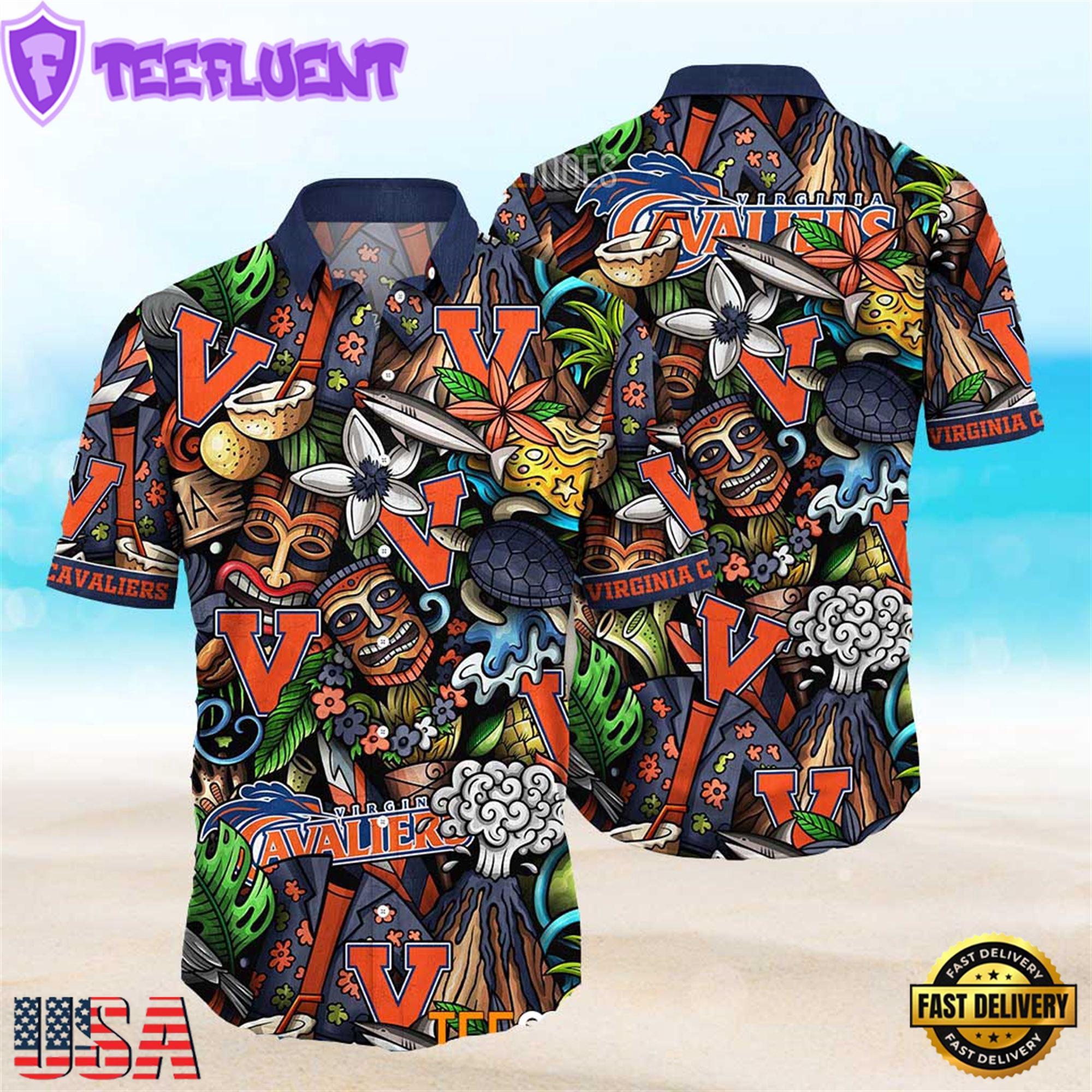 Photos Of NCAA NEW Virginia Cavaliers Ncaa Mens Floral Button Up Hawaiian Shirt