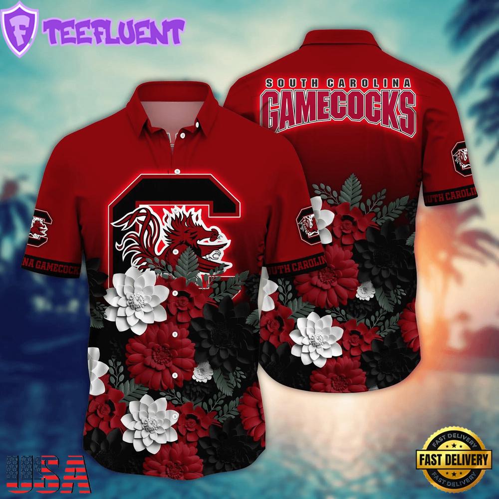 Photos Of NCAA South Carolina Gamecocks Flower Tropical Summer Beach Hawaiian Shirt , NCAA Fans Gift