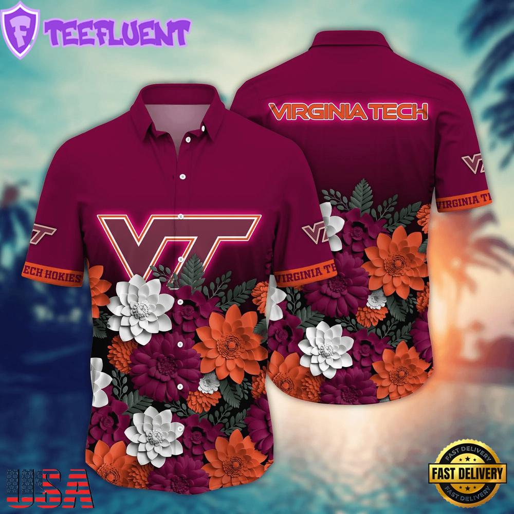 NCAA Virginia Tech Hokies Flower Tropical Summer Beach Hawaiian Shirt , NCAA Fans Gift