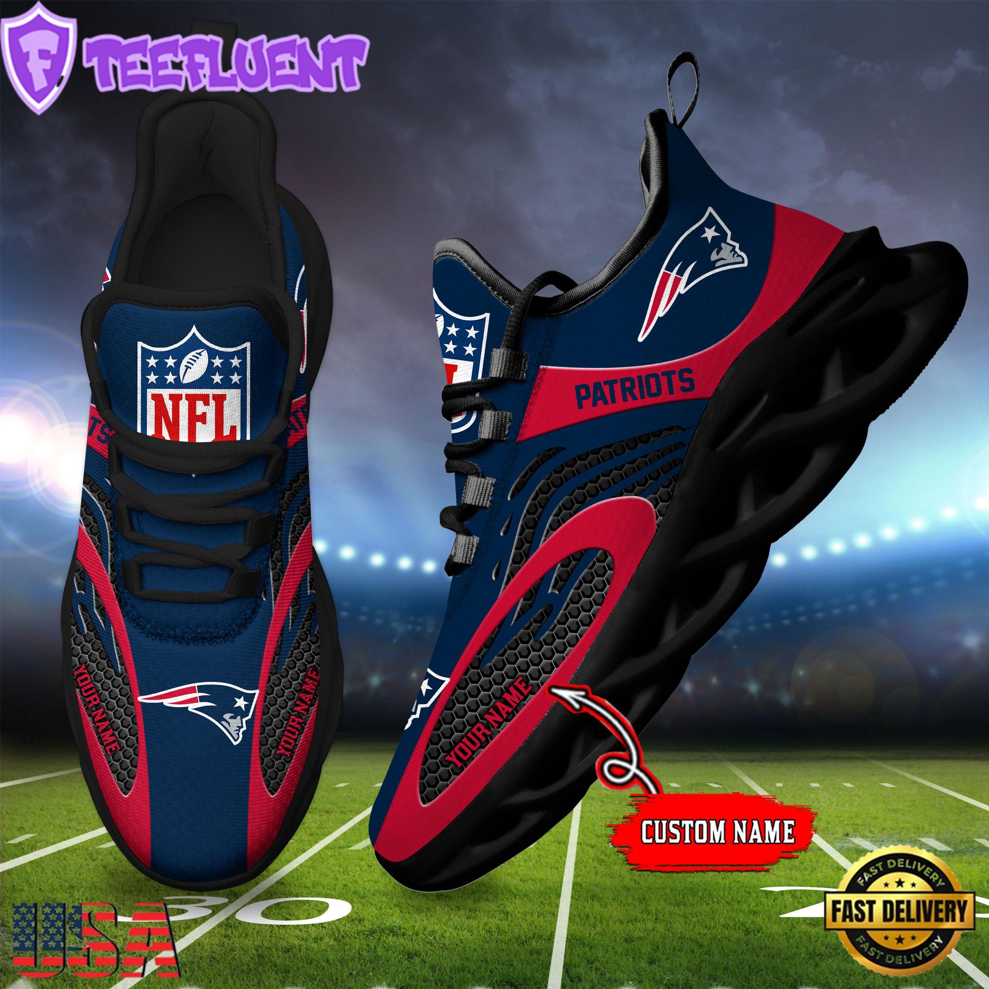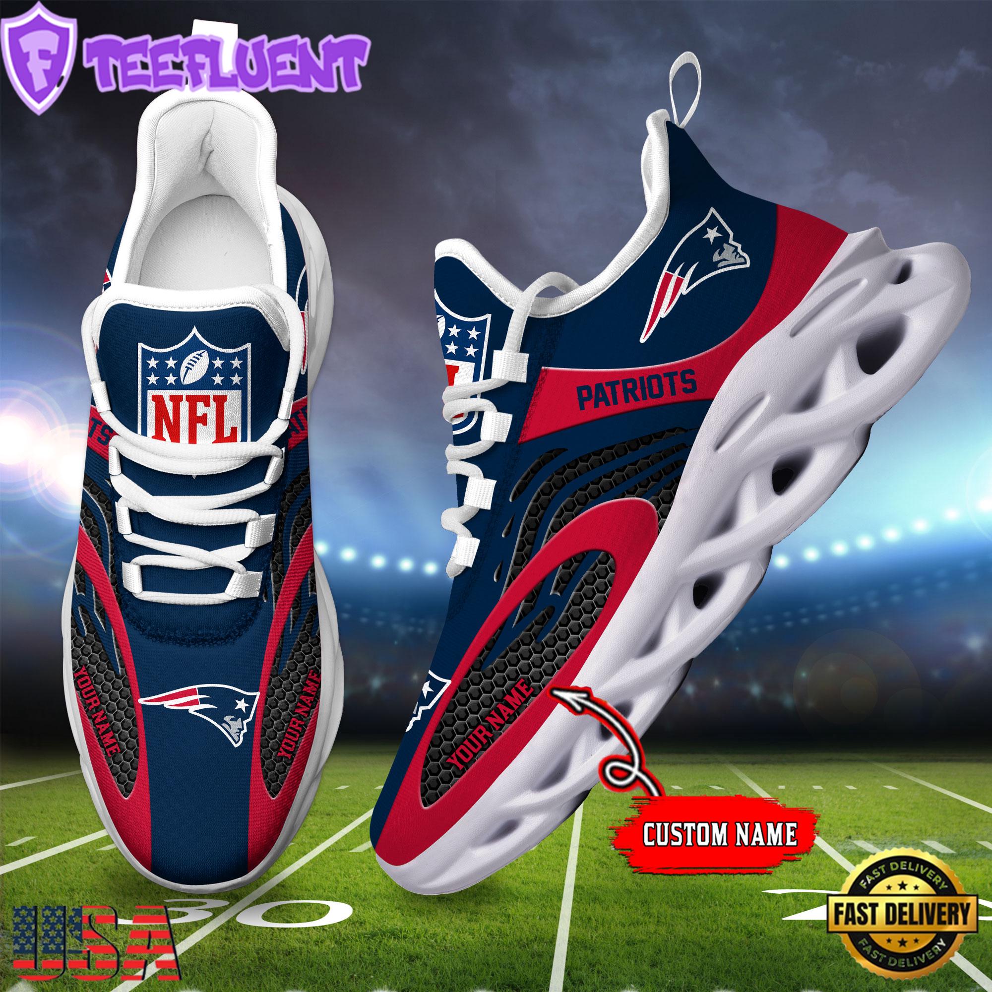 New England Patriots Custom Name NFL Limited New Design Max Soul Shoes , Running Sneakers Shoes