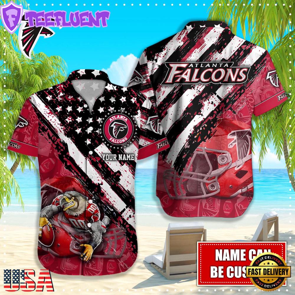 NFL Atlanta Falcons Football American Flag Mascot Custom Name Summer Hawaiian Shirt