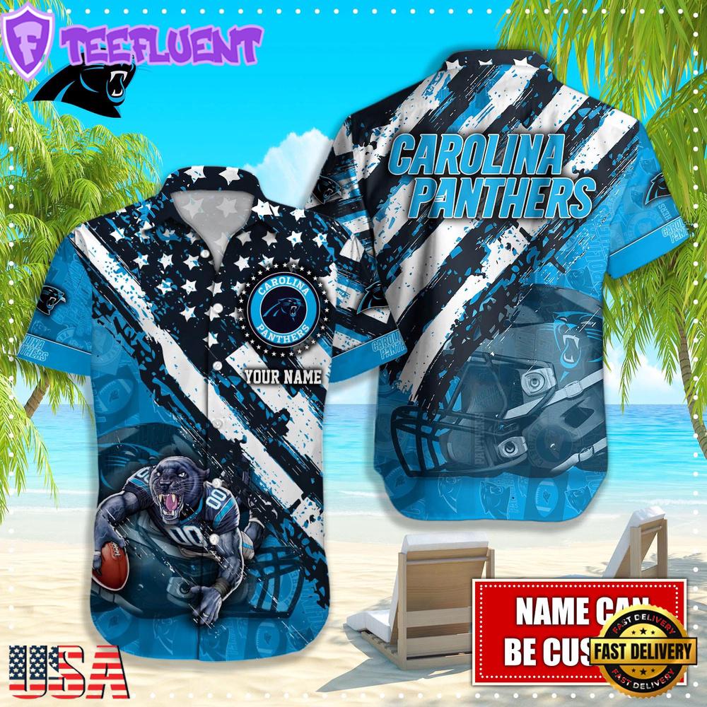 NFL Carolina Panthers Football American Flag Mascot Custom Name Summer Hawaiian Shirt