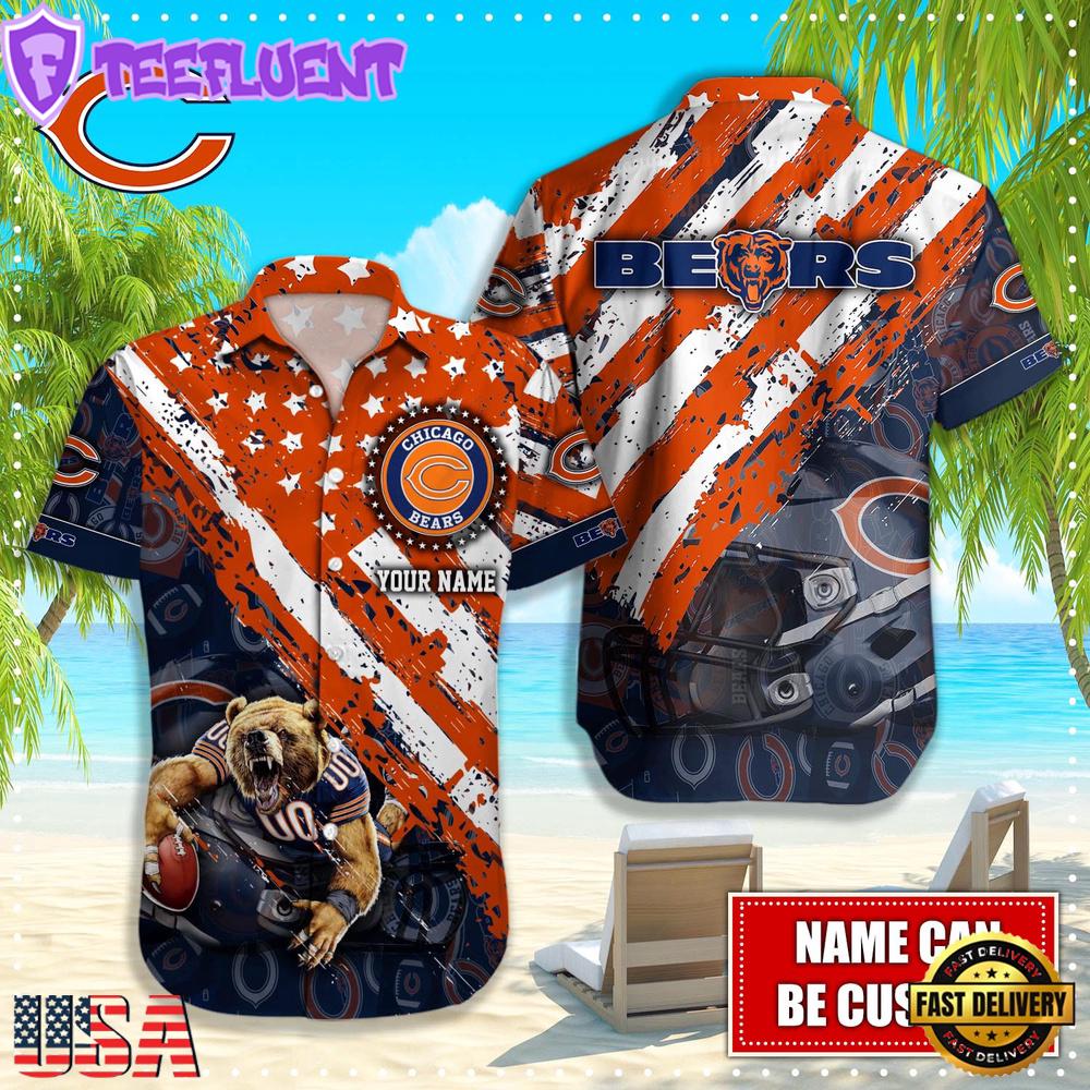 NFL Chicago Bears Football American Flag Mascot Custom Name Summer Hawaiian Shirt
