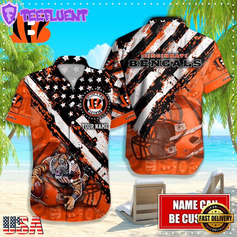 NFL Cincinnati Bengals Football American Flag Mascot Custom Name Summer Hawaiian Shirt