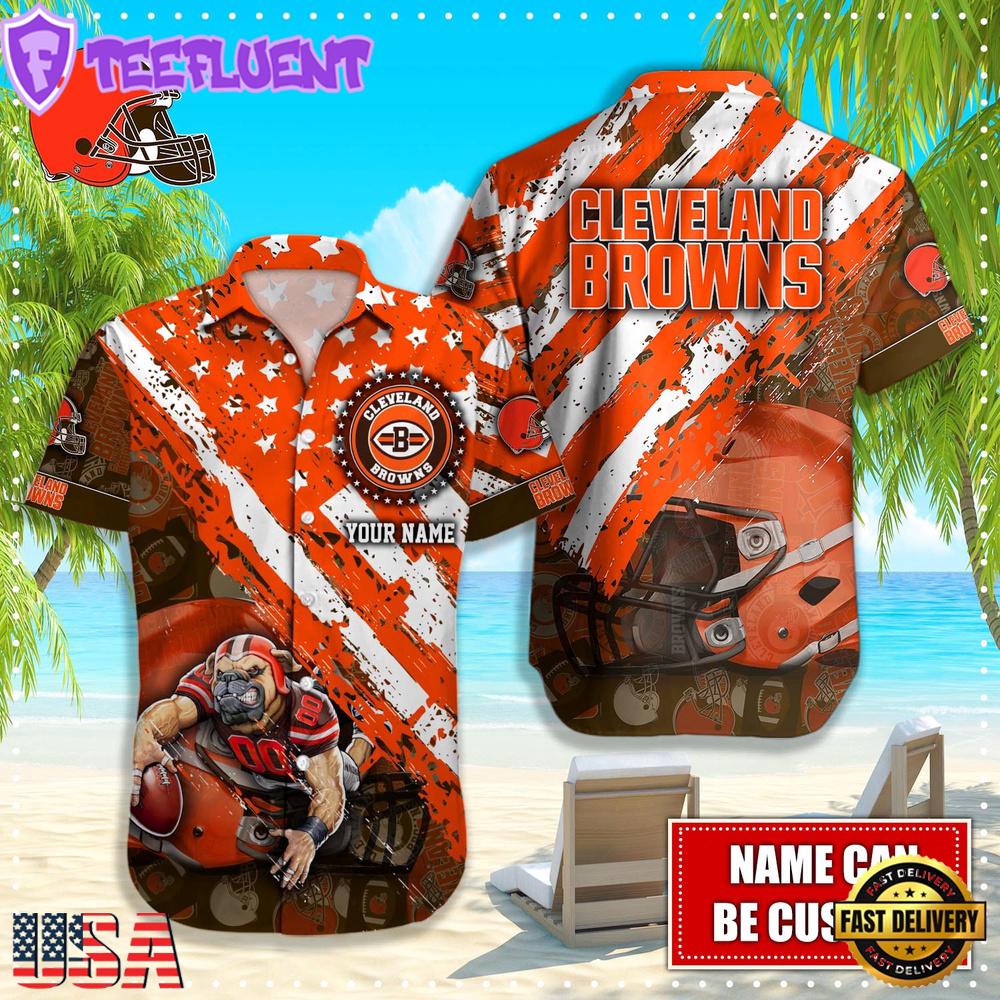 NFL Cleveland Browns Football American Flag Mascot Custom Name Summer Hawaiian Shirt
