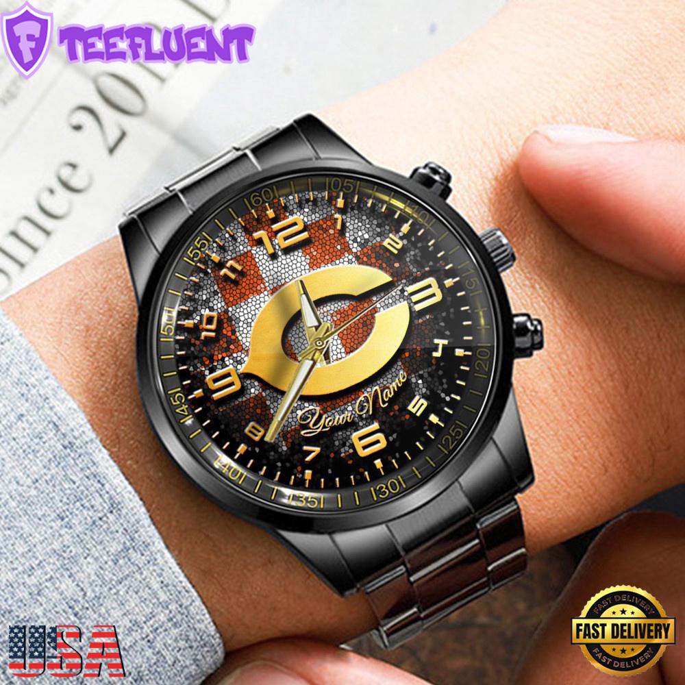 NFL Custom Name Chicago Bears 3D Men Black Stainless Steel Watch