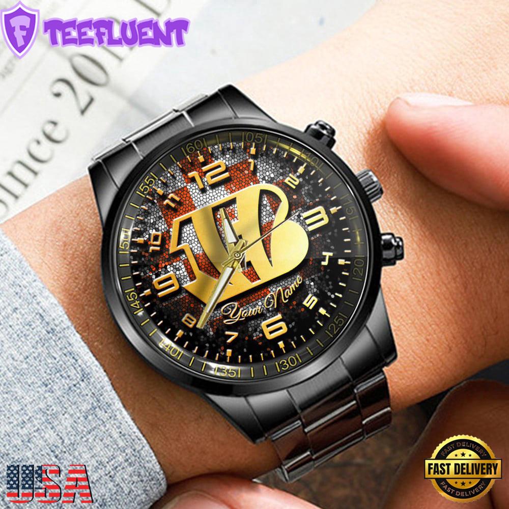 Photos Of NFL Custom Name Cincinnati Bengals 3D Men Black Stainless Steel Watch