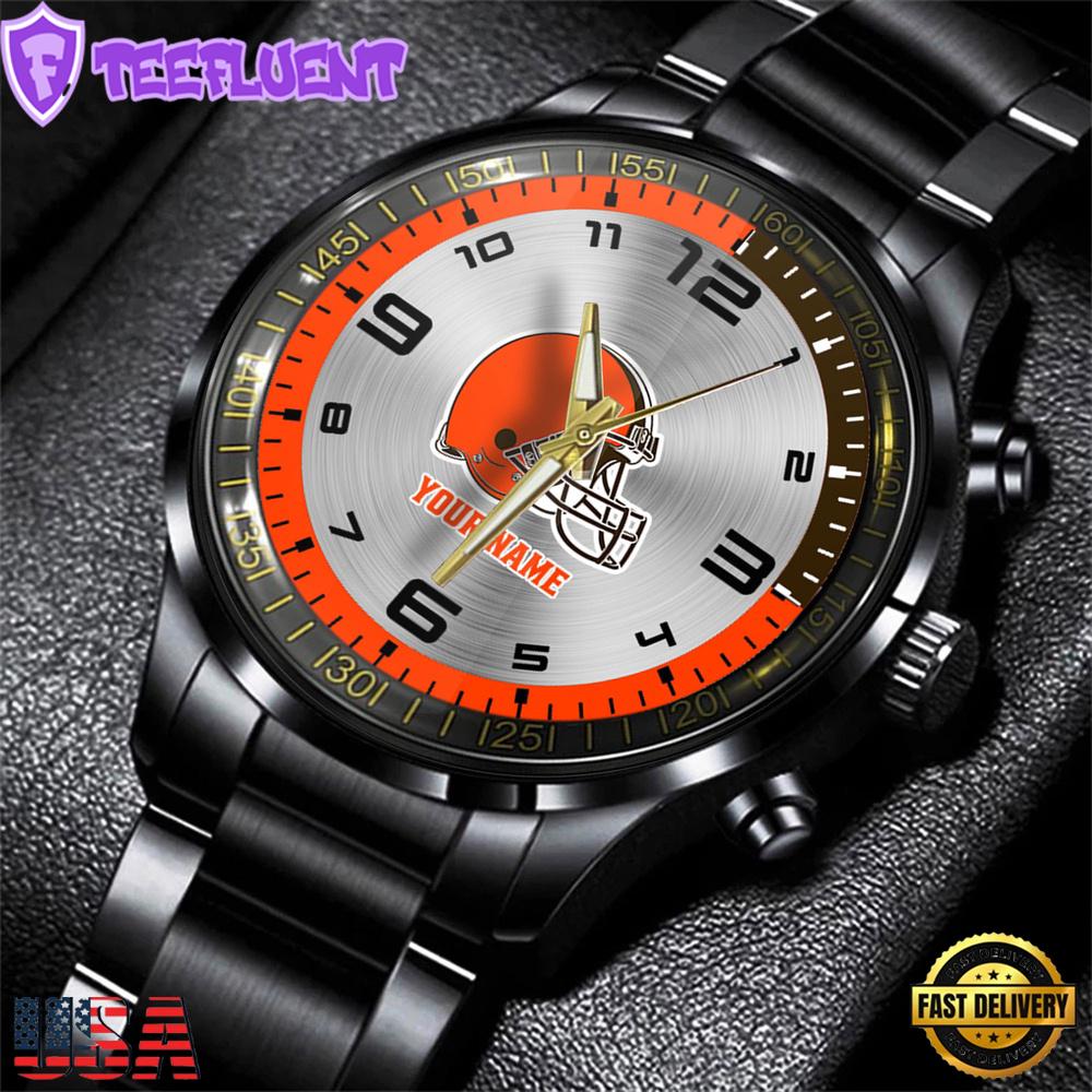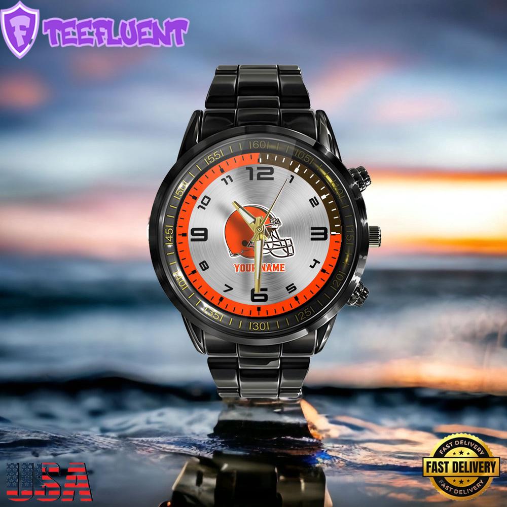 NFL Custom Name Cleveland Browns Black Stainless Steel Watch Gifts For Fans