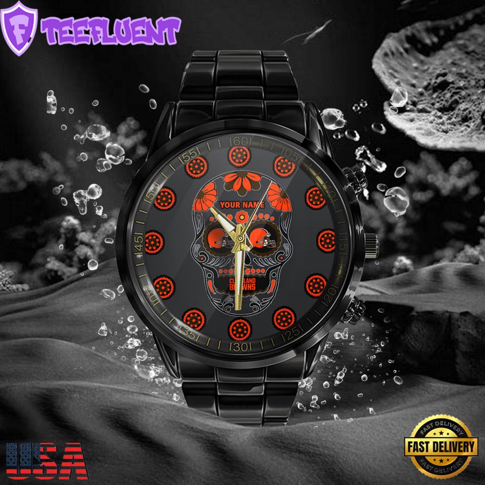 NFL Custom Name Cleveland Browns Men Black Stainless Steel Watch