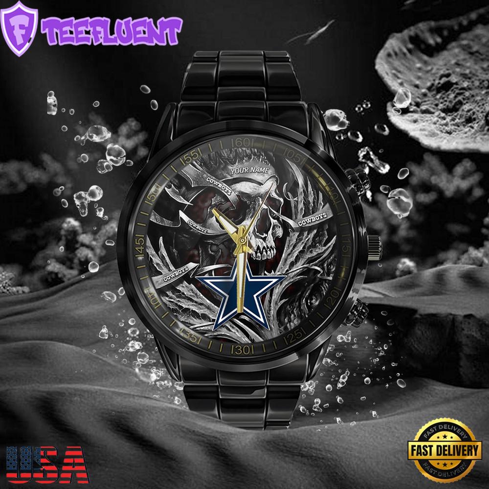 NFL Custom Name Dallas Cowboys Men Black Stainless Steel Watch