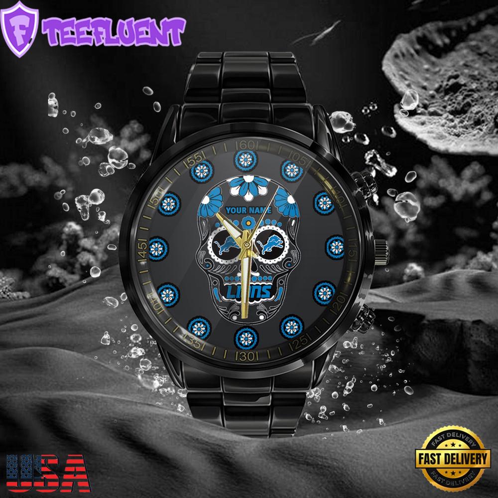 NFL Custom Name Detroit Lions Men Black Stainless Steel Watch