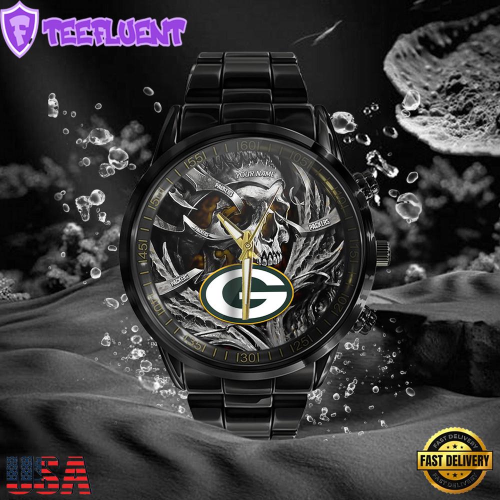 NFL Custom Name Green Bay Packers Men Black Stainless Steel Watch