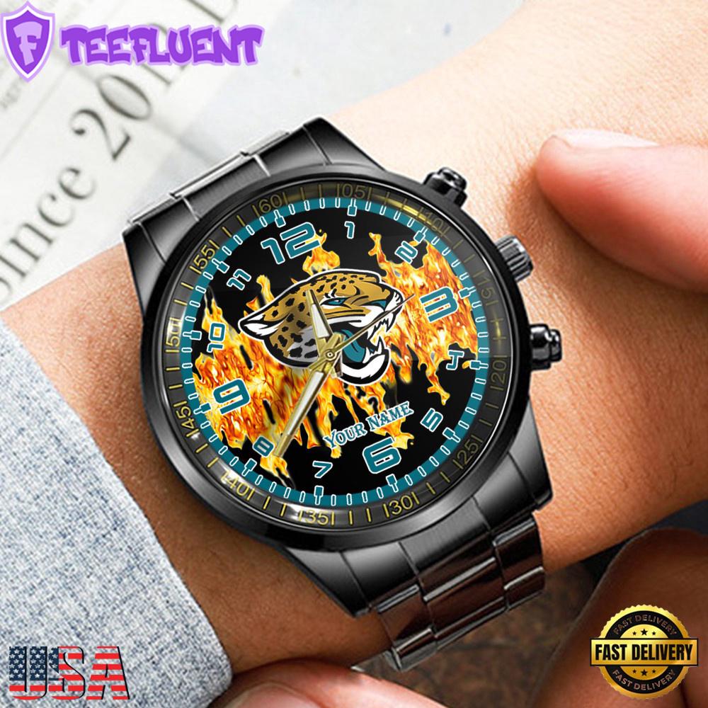 Photos Of NFL Custom Name Jacksonville Jaguars 3D Men Black Stainless Steel Watch