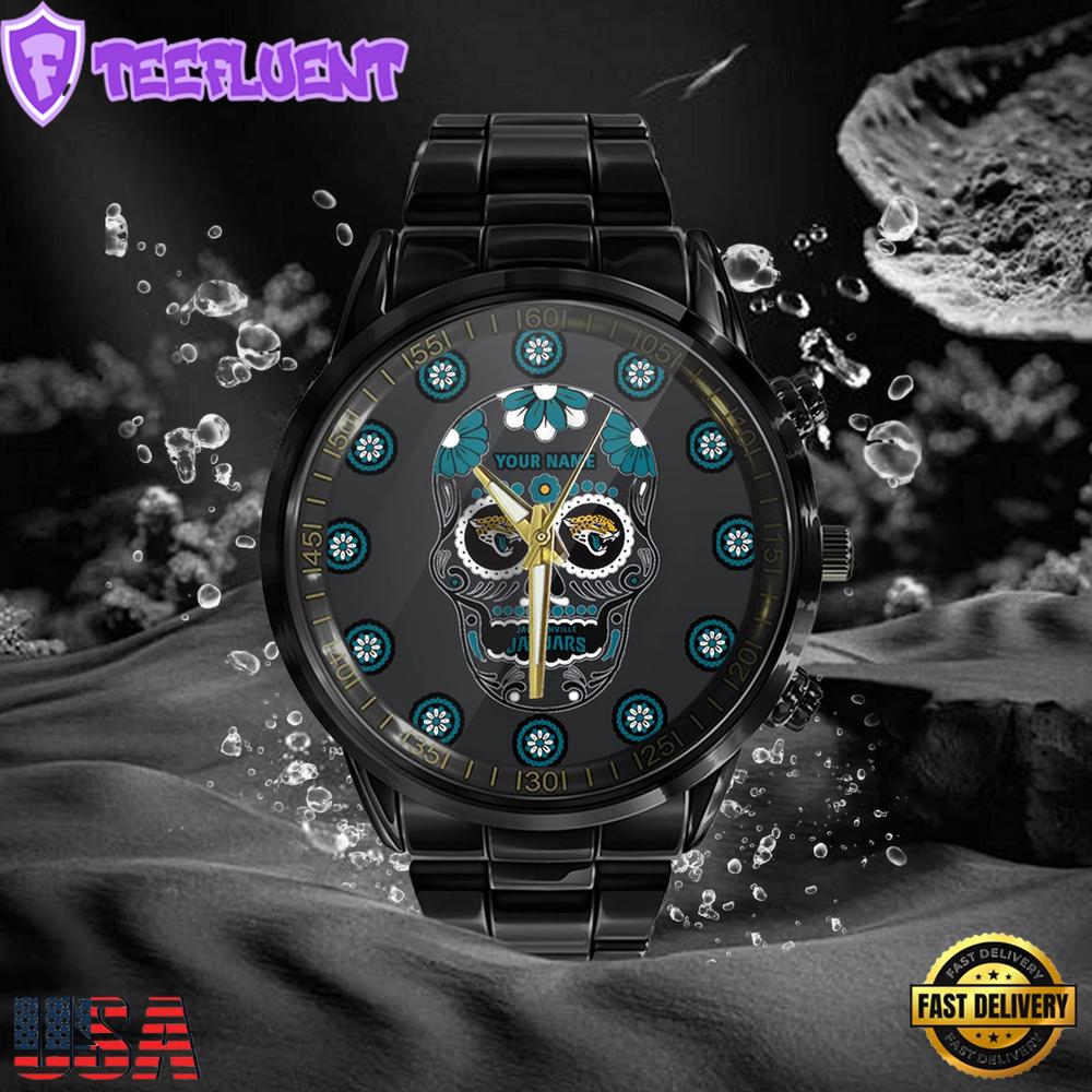 NFL Custom Name Jacksonville Jaguars Men Black Stainless Steel Watch