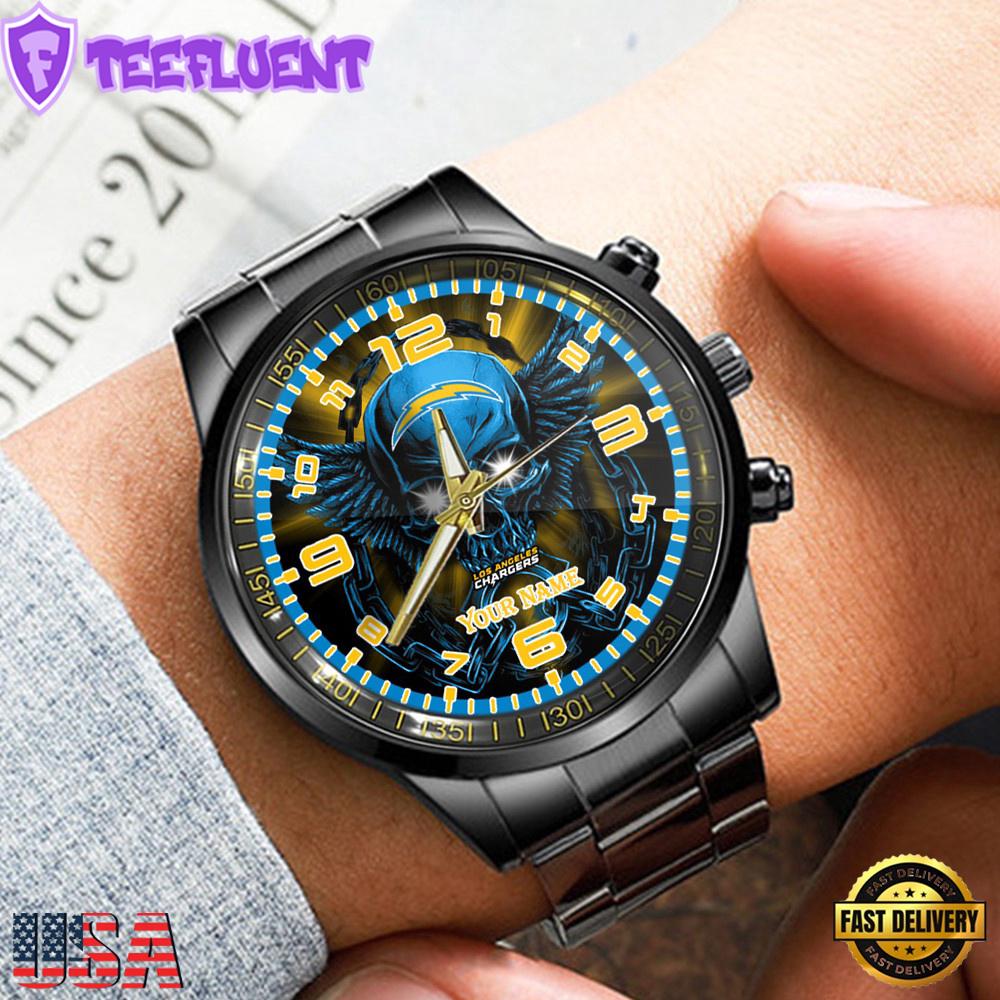 NFL Custom Name Los Angeles Chargers 3D Men Black Stainless Steel Watch