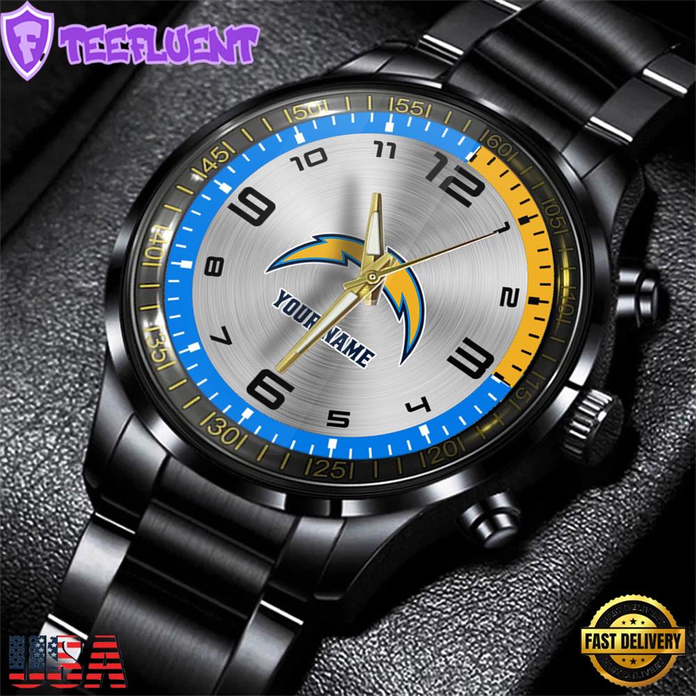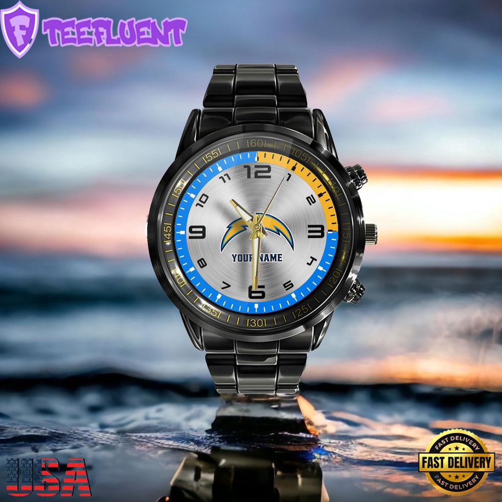 NFL Custom Name Los Angeles Chargers Black Stainless Steel Watch Gifts For Fans