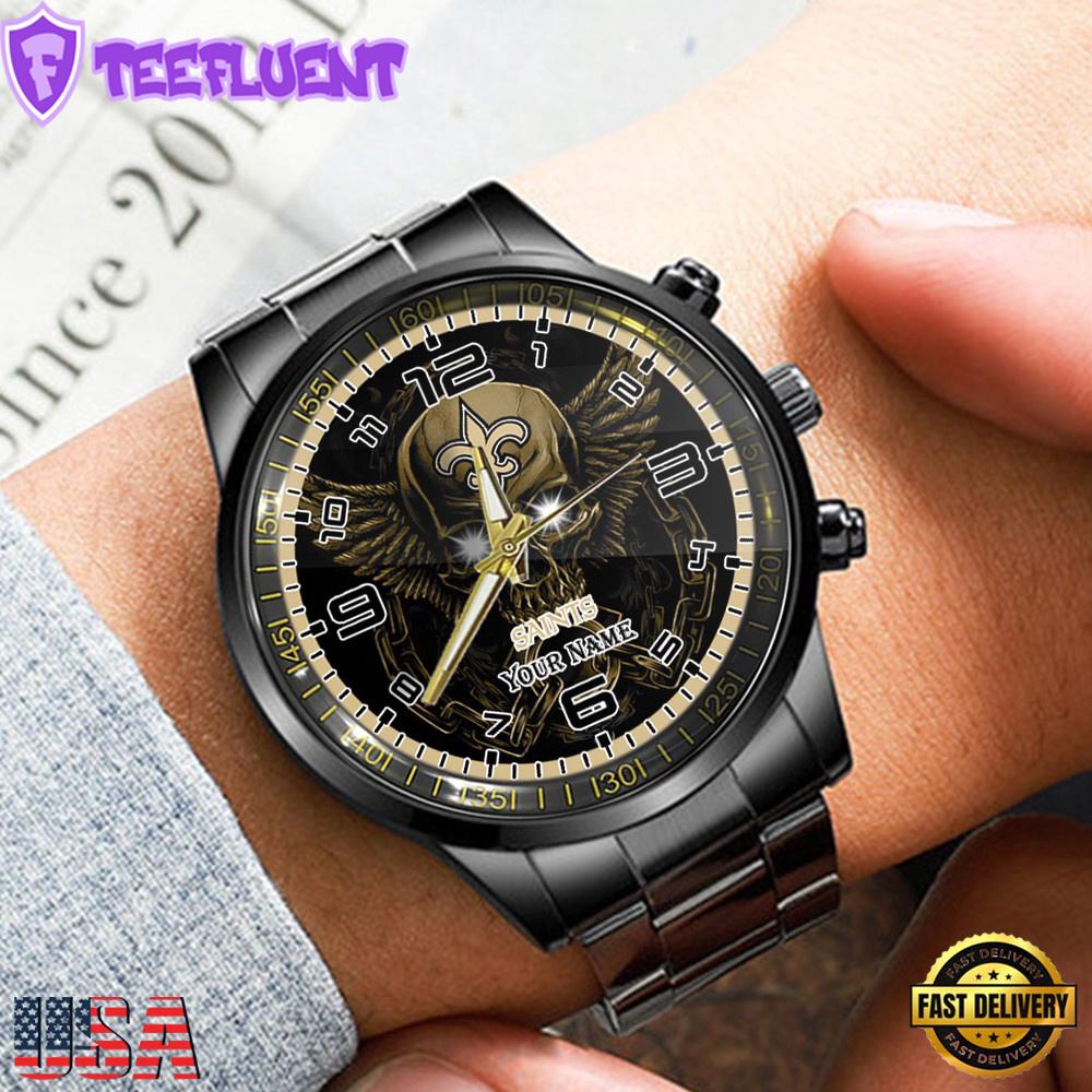 NFL Custom Name New Orleans Saints 3D Men Black Stainless Steel Watch
