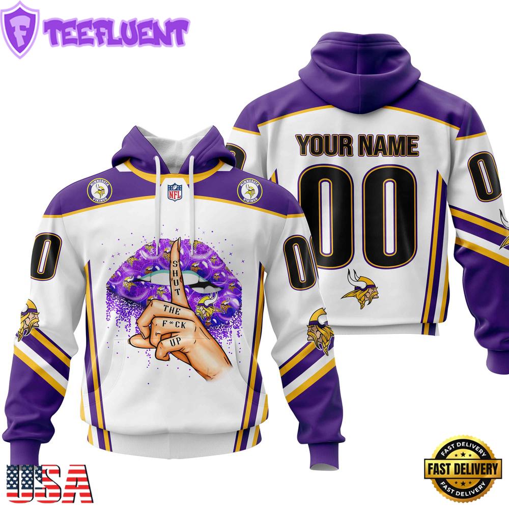 NFL Custom Name Number Minnesota Vikings Lips All Over Print Hoodie , NFL Unisex Hoodies