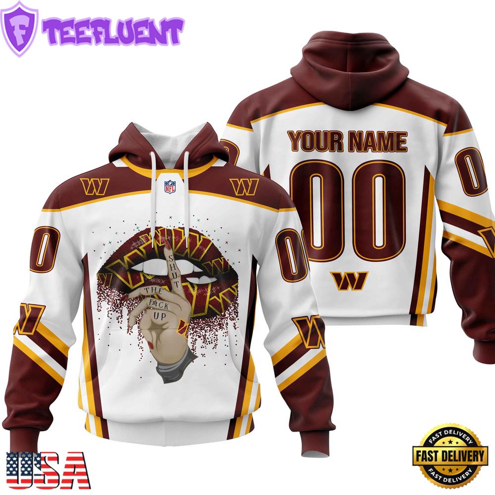 Photos Of NFL Custom Name Number Washington Commanders Lips All Over Print Hoodie , NFL Unisex Hoodies