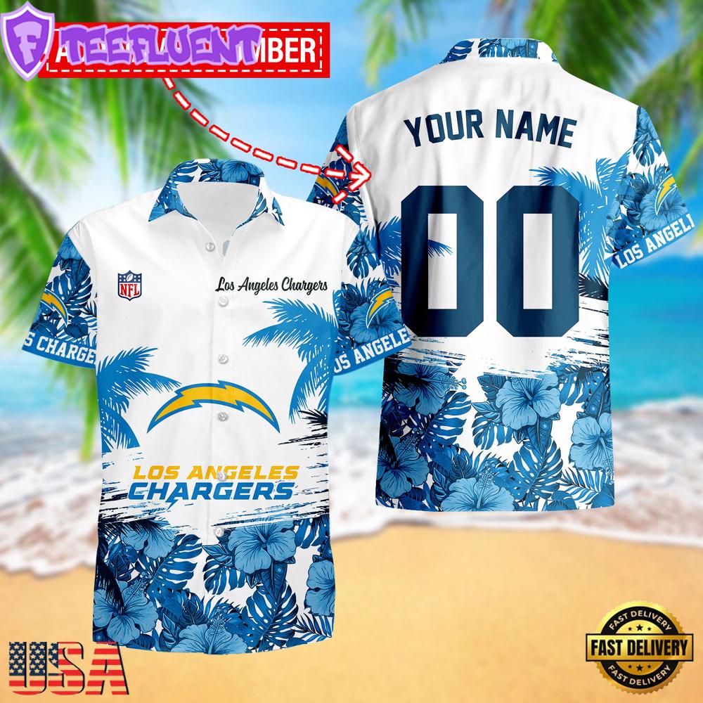 NFL Custom Name NumberLos Angeles Chargers Hibiscus Flower Hawaiian Shirt New Designs