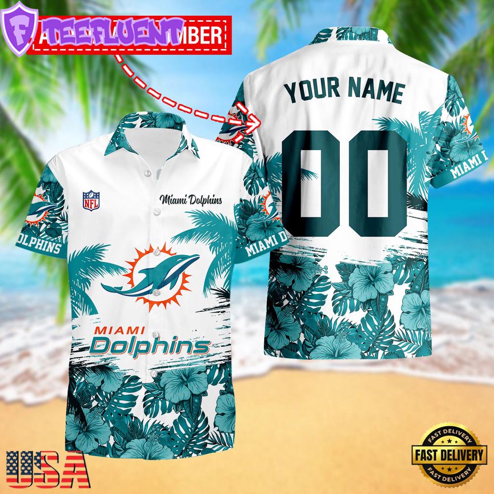 NFL Custom Name NumberMiami Dolphins Hibiscus Flower Hawaiian Shirt New Designs