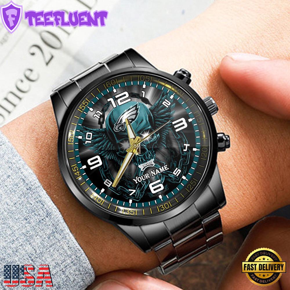 NFL Custom Name Philadelphia Eagles 3D Men Black Stainless Steel Watch