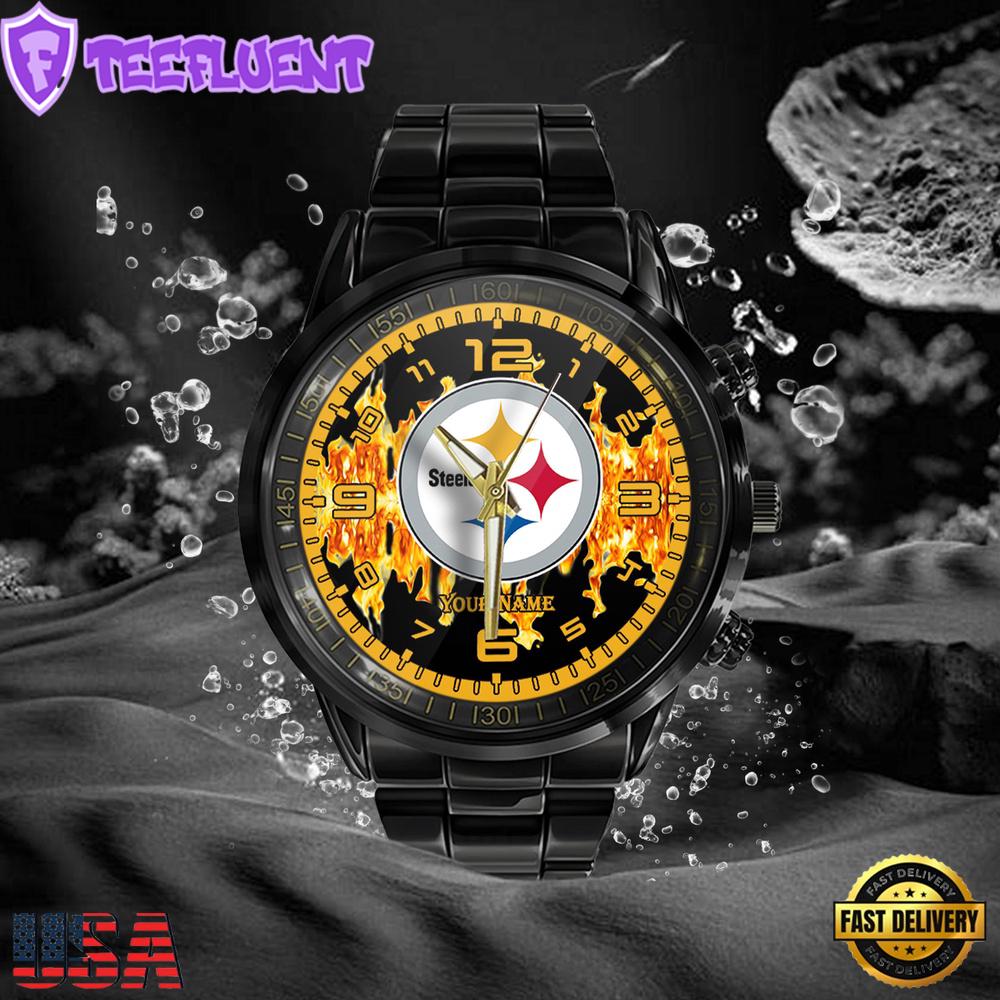 NFL Custom Name Pittsburgh Steelers 3D Men Black Stainless Steel Watch
