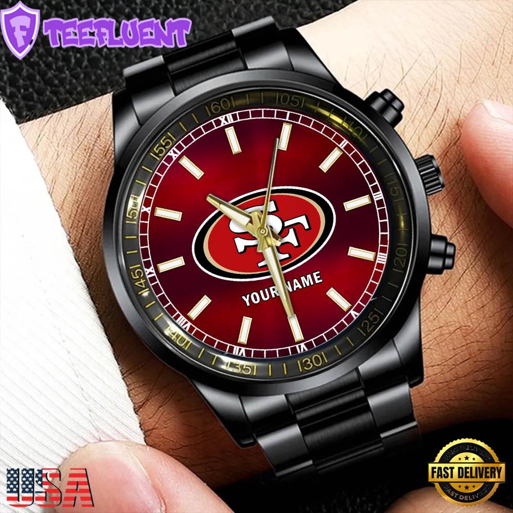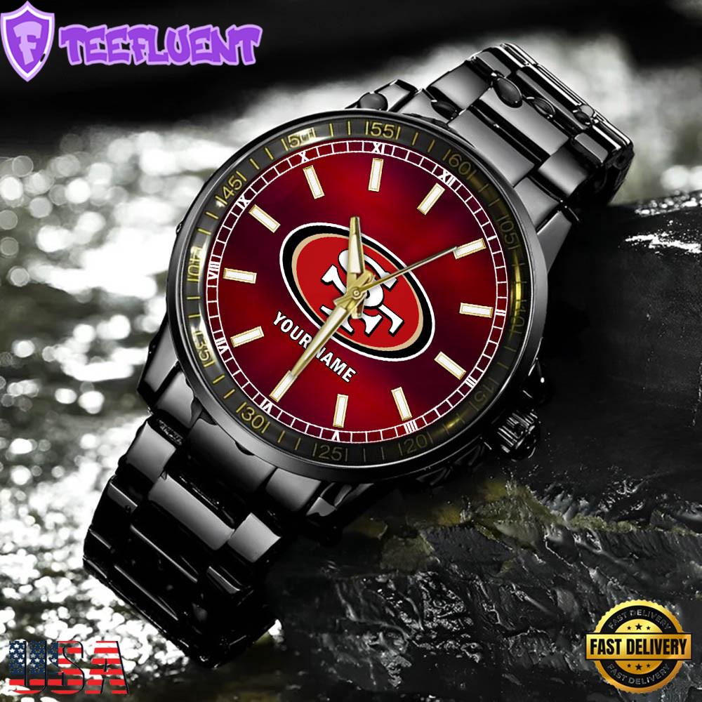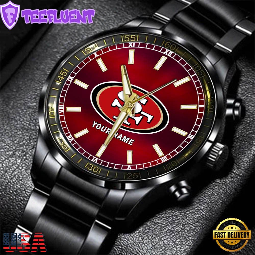 NFL Custom Name San Francisco 49ers Black Stainless Steel Watch Gifts For Fans