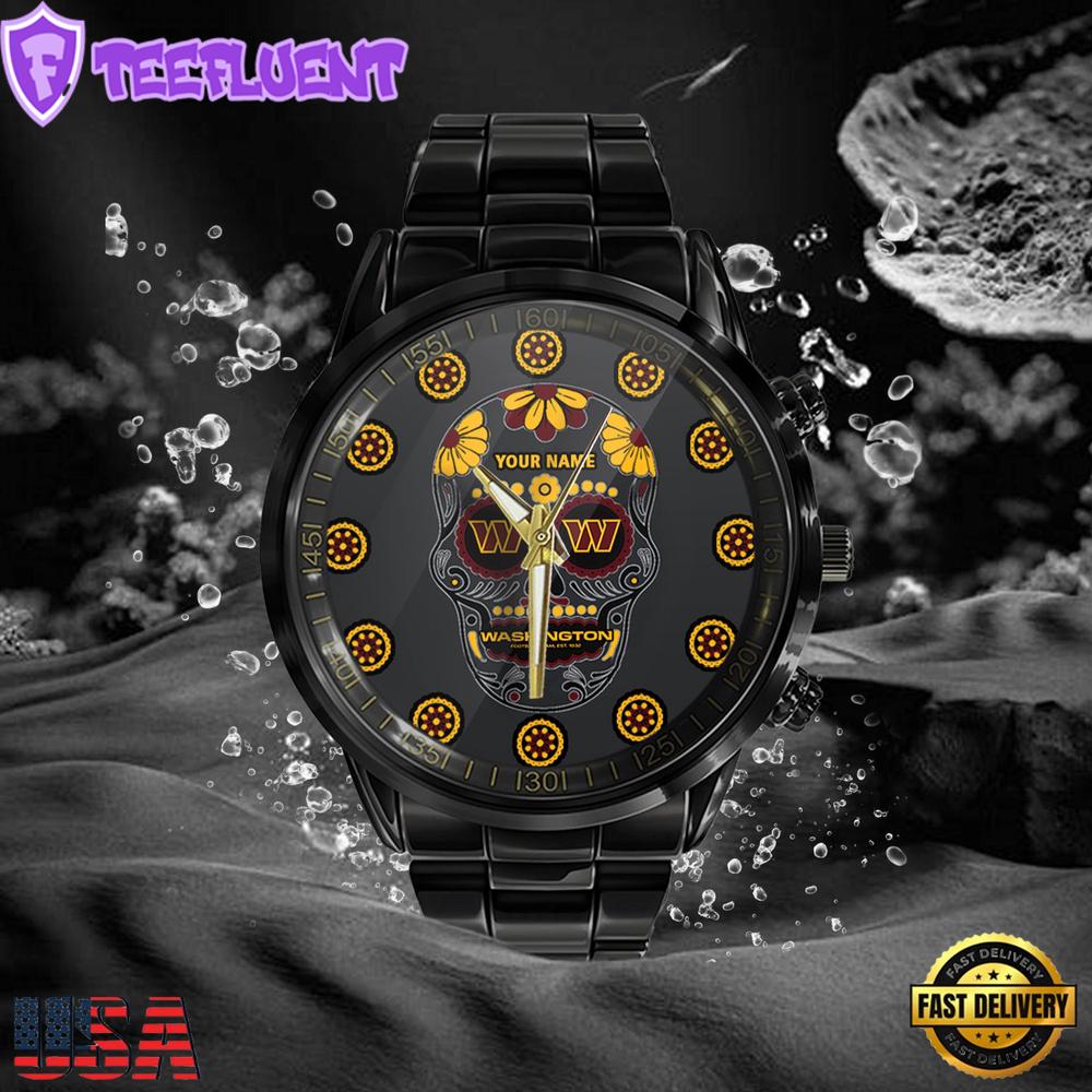 NFL Custom Name Washington Commanders Men Black Stainless Steel Watch