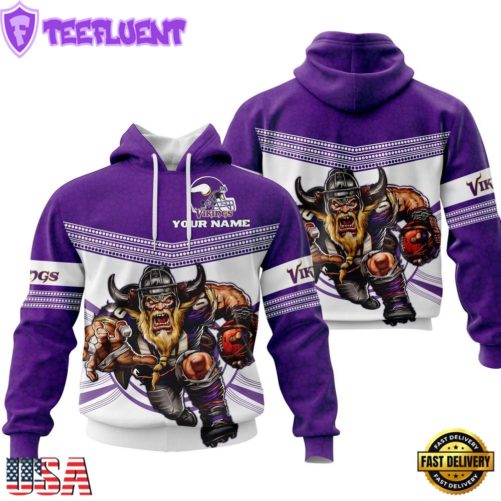 NFL Custom NameMinnesota Vikings Mascot All Over Print Hoodie Shirt , NFL Unisex Hoodies