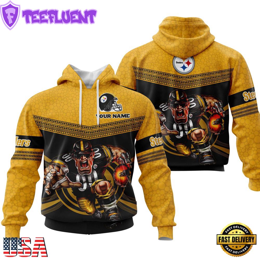 NFL Custom NamePittsburgh Steelers Mascot All Over Print Hoodie Shirt , NFL Unisex Hoodies