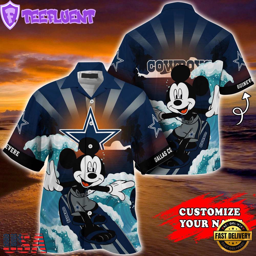 Photos Of NFL Dallas Cowboys Mickey Mouse Surfing Custom Name Summer Hawaiian Shirt